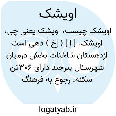 اویشک. [ اِ ] ( اِخ ) دهی است ازدهستان شاخنات بخش درمیان شهرستان بیرجند دارای 306تن سکنه. رجوع به فرهنگ جغرافیایی ایران ج 9 شود.