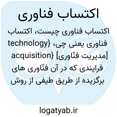{technology acquisition} [مدیریت فنّاوری] فرایندی که در آن فنّاوری های برگزیده از طریق طیفی از روش های مختلف شامل خرید یا همکاری و مشارکت یا توسعه درونی کسب می شوند
