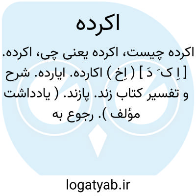 اکرده. [ اِ ک َ دَ ] ( اِخ ) اکارده. ایارده. شرح و تفسیر کتاب زند. پازند. ( یادداشت مؤلف ). رجوع به مترادفات کلمه شود.