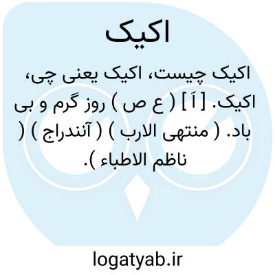 اکیک. [ اَ ] ( ع ص ) روز گرم و بی باد. ( منتهی الارب ) ( آنندراج ) ( ناظم الاطباء ).
