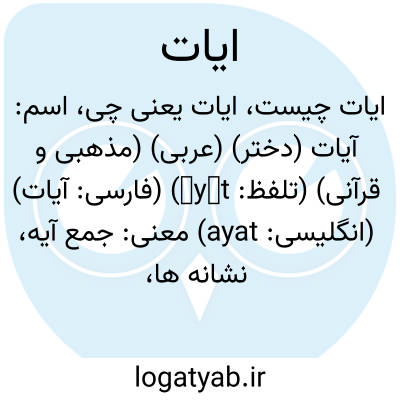 اسم: آیات (دختر) (عربی) (مذهبی و قرآنی) (تلفظ: āyāt) (فارسی: آيات) (انگلیسی: ayat)
