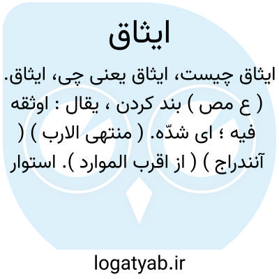 ایثاق. ( ع مص ) بند کردن، یقال: اوثقه فیه؛ ای شدّه. ( منتهی الارب ) ( آنندراج ) ( از اقرب الموارد ). استوار بستن. ( تاج المصادر بیهقی ) ( ترجمان القرآن ترتیب عادل بن علی ص 24 ). بند کردن و بستن. ( ناظم الاطباء ).