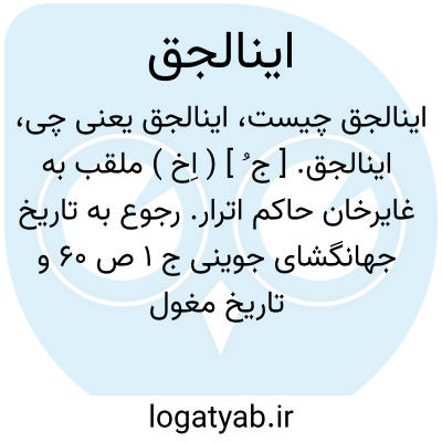 اینالجق. [ ج ُ ] ( اِخ ) ملقب به غایرخان حاکم اترار. رجوع به تاریخ جهانگشای جوینی ج 1 ص 60 و تاریخ مغول تألیف عباس اقبال شود.
