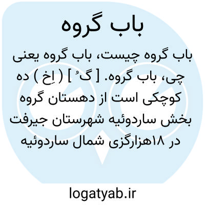 باب گروه. [ گ ُ ] ( اِخ ) ده کوچکی است از دهستان گروه بخش ساردوئیه شهرستان جیرفت در 18هزارگزی شمال ساردوئیه، 15هزارگزی باختر راه مالرو ساردوئیه - راین. دارای 25 تن سکنه. ( فرهنگ جغرافیائی ایران ج 8 ).
