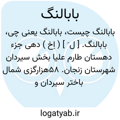 بابالنگ. [ ل َ ] ( اِخ ) دهی جزء دهستان طارم علیا بخش سیردان شهرستان زنجان. 58هزارگزی شمال باختر سیردان و 10 هزارگزی راه مالرو عمومی. کوهستانی سردسیر. سکنه آن 205 تن، شیعه. آب آن از رودخانه محلی و محصول آن غلات و شغل اهالی زراعت و صنایع دستی زنان گلیم و جاجیم بافی است. راه مالرو و صعب العبور دارد. ( فرهنگ جغرافیائی ایران ج 2 ).
