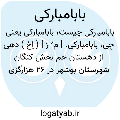 بابامبارکی. [ م ُ رَ ] ( اِخ ) دهی از دهستان جم بخش کنگان شهرستان بوشهر در 26 هزارگزی خاور کنگان 2 هزارگزی راه عمومی کنگان به پشتکوه. جلگه معتدل مالاریائی. سکنه آن 580 تن. آب آن از قنات و محصول آن غلات، مرکبات، انار و شغل اهالی زراعت است و راه مالرو دارد. ( فرهنگ جغرافیائی ایران ج 7 ).