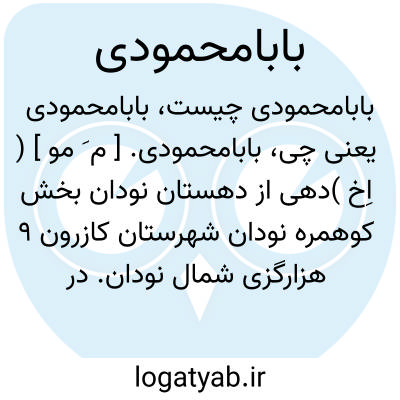 بابامحمودی. [ م َ مو ] ( اِخ )دهی از دهستان نودان بخش کوهمره نودان شهرستان کازرون 9 هزارگزی شمال نودان. در تنگ چوگان نزدیک راه فرعی نودان به کازرون. دامنه، معتدل و مالاریائی. سکنه آن 77 تن. آب آن از چشمه و محصول آن غلات، تریاک، انجیر و انگور و شغل اهالی زراعت و قالی و گلیم بافی است. راه مالرو دارد. ( فرهنگ جغرافیائی ایران ج 7 ).