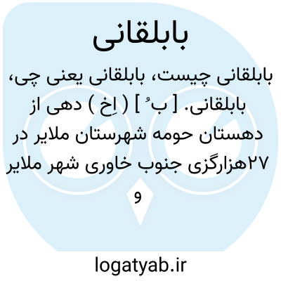 بابلقانی. [ ب ُ ] ( اِخ ) دهی از دهستان حومه شهرستان ملایر در 27هزارگزی جنوب خاوری شهر ملایر و 15هزارگزی شمال راه شوسه ملایر به اراک. کوهستانی، معتدل، مالاریائی. دارای 1089تن سکنه و آب آن از قنات است. محصول آن غلات، انگور و شغل اهالی زراعت است. صنایع دستی زنان قالی بافی است و راه مالرو دارد. ( فرهنگ جغرافیائی ایران ج 5 ).