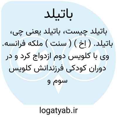 باتیلد. ( اِخ ) ( سنت ) ملکه فرانسه. وی با کلویس دوم ازدواج کرد و در دوران کودکی فرزندانش کلویس سوم و شیدریک دوم و تیِری حکومت داشت و در سال 680 م. در صومعه شهر شل درگذشت. ذکران وی در 30 ژانویه است.