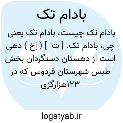 بادام تک. [ ت َ ] ( اِخ ) دهی است از دهستان دستگردان بخش طبس شهرستان فردوس که در 123هزارگزی شمال طبس واقع است. سرزمینی است جلگه ای وگرمسیر دارای 88 تن سکنه. آبش از قنات است. محصولش غلات، انگور، ذرت، گاورس و شغل مردمش زراعت است. راهش ماشین رو میباشد. ( از فرهنگ جغرافیائی ایران ج 9 ).