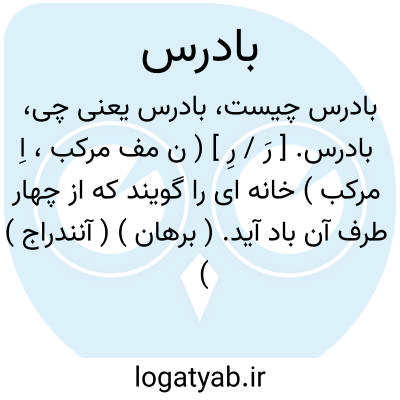 بادرس. [ رَ / رِ ] ( ن مف مرکب، اِ مرکب ) خانه ای را گویند که از چهار طرف آن باد آید. ( برهان ) ( آنندراج ) ( ناظم الاطباء ). جائیست که از هر طرف باد به آنجا رسد. ( فرهنگ سروری ). جای بادگذر. ( شرفنامه منیری ). || بادگیر و بادغس. ( فرهنگ شعوری ج 1 ورق 166 ). رجوع به بادغد، بادغر، بادغرا، بادغس و بادگیر شود. || نفس کش. || دودکش. ( ناظم الاطباء ).