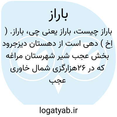 باراز. ( اِخ ) دهی است از دهستان دیزجرود بخش عجب شیر شهرستان مراغه که در 26هزارگزی شمال خاوری عجب شیر و 18هزاروپانصدگزی شمال خاوری شوسه مراغه بدهخوارقان در کوهستان واقع است. هوایش معتدل با 305 تن سکنه. آبش از چشمه و محصولش غلات، حبوبات و شغل مردمش زراعت و راهش مالرو میباشد. ( از فرهنگ جغرافیائی ایران ج 4 ).
