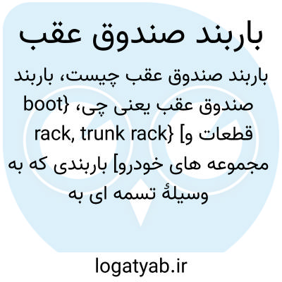 {boot rack, trunk rack} [قطعات و مجموعه های خودرو] باربندی که به وسیلۀ تسمه ای به صندوق عقب خودرو متصل می شود و برای حمل دوچرخه یا وسایل دیگر از آن استفاده می کنند