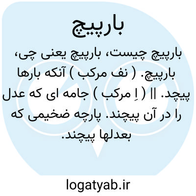 بارپیچ. ( نف مرکب ) آنکه بارها پیچد. || ( اِ مرکب ) جامه ای که عدل را در آن پیچند. پارچه ضخیمی که بعدلها پیچند. آنچه بار در آن پیچند.