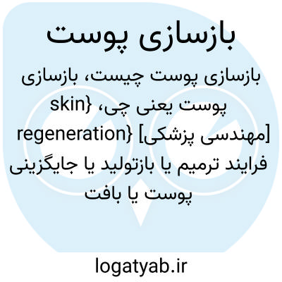 {skin regeneration} [مهندسی پزشکی] فرایند ترمیم یا بازتولید یا جایگزینی پوست یا بافت های ازدست رفته یا آسیب دیده ازطریق نوسازی طبیعی