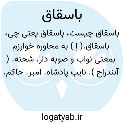 باسقاق.( اِ ) به محاوره خوارزم بمعنی نواب و صوبه دار. شحنه. ( آنندراج ). نایب پادشاه. امیر. حاکم. ( ناظم الاطباء ). کلمه مغولی شحنه. خان. ( یادداشت مؤلف ). ج، باسقاقان: بعضی را گرفته و باسقاق نشانده. ( جهانگشای جوینی ). و یاسا رسانید که سروران و باسقاقان هر طرفی به نفس خویش به حشر روند. ( جهانگشای جوینی ). امرا و باسقاقان که حاضر بودند در تسکین نایره تشویش مشاورت کردند. ( جهانگشای جوینی ). و او را، وقت استخلاص خوارزم از قبل خویش باسقاق خوارزم گردانید. ( جهانگشای جوینی ). باسقاق و ملک و کسانی که از قبل ما درفلان طرف حاکم اند بدانند. ( تاریخ مبارک غازانی ص 218 ). باسقاقان و ملوک و قضاة و نواب و ائمه و اعیان و معتبران و کدخدایان و جمهور رعایای ولایت بدانند. ( تاریخ مبارک غازانی ص 225 ). فرمود تا هیچ ملک و باسقاق وبیتکچی قطعاً به برات و حوالت قلم بر کاغذ ننهند. ( تاریخ مبارک غازانی ص 253 ). و رجوع به باسقاقی شود.
