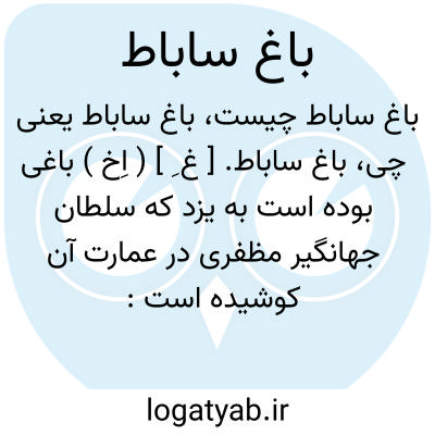 باغ ساباط. [ غ ِ ] ( اِخ ) باغی بوده است به یزد که سلطان جهانگیر مظفری در عمارت آن کوشیده است: باغی بزرگست و معمور و عماراتی بسیار دارد از قدیم و جدید و خانه وطنبی بوسعیدی و با بادگیرقدیم است... و در آستانه باغ، سلطان جهانگیربن شاه یحیی طنبی عالی ساخت... در میان باغ دریاچه ای عالی و قصری در میان [ دریاچه ] ساخته و زورق بر روی آن انداخته. ( از تاریخ جعفری یزد چ افشار ص 141 - 142 ).