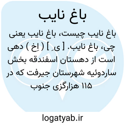 باغ نایب. [ ی ِ ] ( اِخ ) دهی است از دهستان اسفندقه بخش ساردوئیه شهرستان جیرفت که در 115 هزارگزی جنوب ساردوئیه بر سر راه فرعی بافت به جیرفت واقع است و یک خانوار سکنه دارد. ( از فرهنگ جغرافیایی ایران ج 8 ).