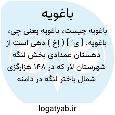 باغویه. [ ی َ ] ( اِخ ) دهی است از دهستان عمدادی بخش لنگه شهرستان لار که در 148 هزارگزی شمال باختر لنگه در دامنه شمالی ارتفاعات چیرو در دامنه واقع است. ناحیه ای است گرمسیر و دارای 77 تن سکنه، آب آنجا از قنات و چاه و باران تأمین میشود. محصول عمده آن غلات و خرما و شغل مردمش زراعت و راهش فرعی است. ( از فرهنگ جغرافیایی ایران ج 7 ).