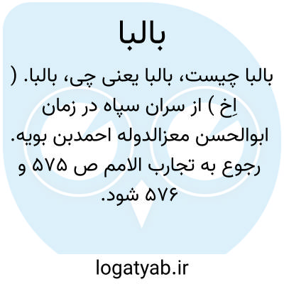 بالبا. ( اِخ ) از سران سپاه در زمان ابوالحسن معزالدوله احمدبن بویه. رجوع به تجارب الامم ص 575 و 576 شود.