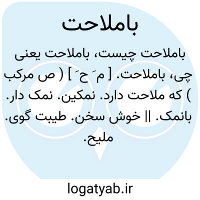 باملاحت. [ م َ ح َ ] ( ص مرکب ) که ملاحت دارد. نمکین. نمک دار. بانمک. || خوش سخن. طیبت گوی. ملیح.