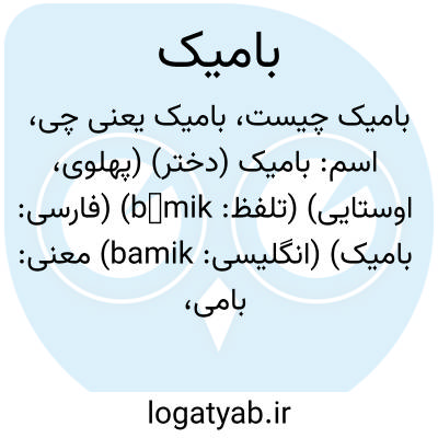 اسم: بامیک (دختر) (پهلوی، اوستایی) (تلفظ: bāmik) (فارسی: باميک) (انگلیسی: bamik)