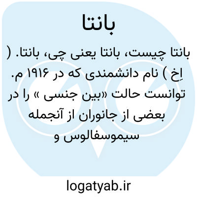 بانتا. ( اِخ ) نام دانشمندی که در 1916 م. توانست حالت «بین جنسی » را در بعضی از جانوران از آنجمله سیموسفالوس و تولوس کشف کند. ( از بیولوژی تألیف خبیری ج 1 ص 252 ).
