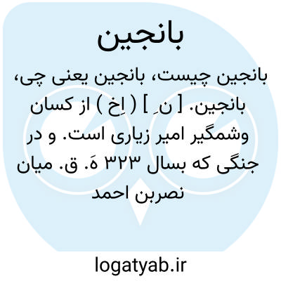 بانجین. [ ن ِ ] ( اِخ ) از کسان وشمگیر امیر زیاری است. و در جنگی که بسال 323 هَ. ق. میان نصربن احمد سامانی و وشمگیر درگرفت ابن بانجین دیلمی با سپاهی گران آهنگ نصربن احمد کرد. ( از احوال و اشعار رودکی نفیسی ج 1 ص 424 و 425 ). و احتمال توان داد که صورت اصلی این کلمه بانجیر بوده است ( مبدل بانگیر ) از نوع وشمگیر و شیرگیر و... و رجوع به بانجیر شود.