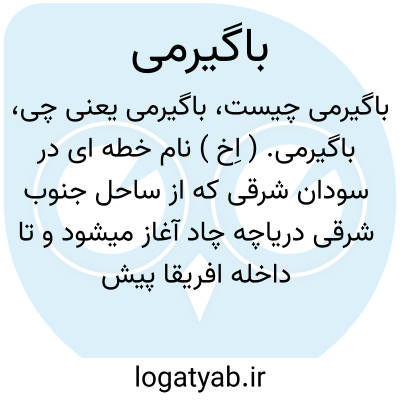 باگیرمی. ( اِخ ) نام خطه ای در سودان شرقی که از ساحل جنوب شرقی دریاچه چاد آغاز میشود و تا داخله افریقا پیش میرود و به غنا و کنگو منتهی میشود. ( از قاموس الاعلام ترکی ج 2 ص 1204 ).