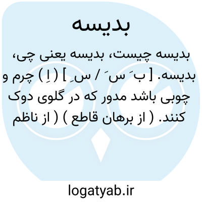 بدیسه. [ ب َ س َ / س ِ ] ( اِ ) چرم و چوبی باشد مدور که در گلوی دوک کنند. ( از برهان قاطع ) ( از ناظم الاطباء ). || تخته میان سوراخ مدوری که بر سر دیرک خیمه گذارند. ( از برهان قاطع ) ( ناظم الاطباء ). بادریسه خیمه. ( انجمن آرا ). و رجوع به بادریسه شود.