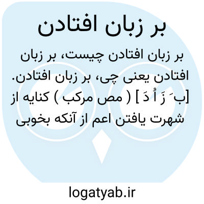 بر زبان افتادن. [ب َ زَ اُ دَ ] ( مص مرکب ) کنایه از شهرت یافتن اعم از آنکه بخوبی باشد یا بزشتی. ( آنندراج ):