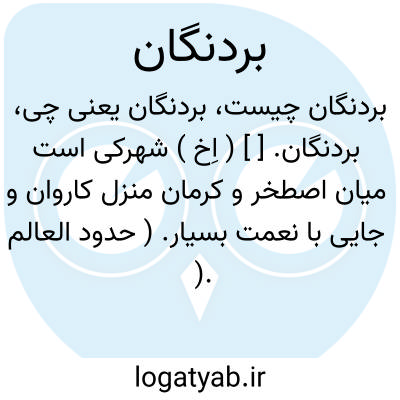 بردنگان. [ ] ( اِخ ) شهرکی است میان اصطخر و کرمان منزل کاروان و جایی با نعمت بسیار. ( حدود العالم ).