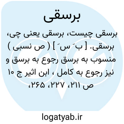 برسقی. [ ب َ س َ ] ( ص نسبی ) منسوب به برسق رجوع به برسق و نیز رجوع به کامل، ابن اثیر ج 10 ص 211، 227، 265، 267، 269 شود.