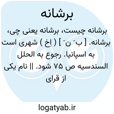 برشانه. [ ب َ ن َ ] ( اِخ ) شهری است به اسپانیا. رجوع به الحلل السندسیه ص 75 شود. || نام یکی از قرای اشبیلیه است.