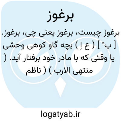 برغوز. [ ب ُ ] ( ع اِ ) بچه گاو کوهی وحشی یا وقتی که با مادر خود برفتار آید. ( منتهی الارب ) ( ناظم الاطباء ). و رجوع به برغز و برغاز شود.