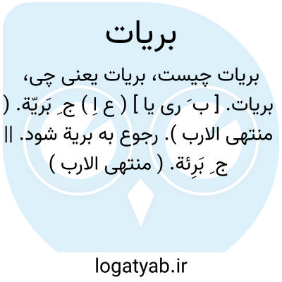 بریات. [ ب َ ری یا ] ( ع اِ ) ج ِ بَریّة. ( منتهی الارب ). رجوع به بریة شود. || ج ِ بَرِئة. ( منتهی الارب ) ( اقرب الموارد ). رجوع به برئة شود.
