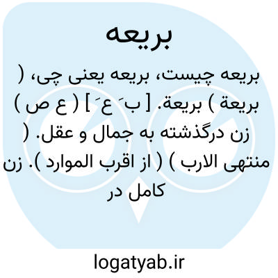 ( بریعة ) بریعة. [ ب َ ع َ ] ( ع ص ) زن درگذشته به جمال و عقل. ( منتهی الارب ) ( از اقرب الموارد ). زن کامل در فضل و جمال و عقل. ( ناظم الاطباء ).