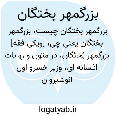 [ویکی فقه] بزرگمهر بُختَگان، در متون و روایات افسانه ای، وزیرِ خسرو اول انوشیروان بوده است، او را به برخورداری از خرد استثنایی و تدبیرهای حکیمانه وصف کرده اند؛ و حکایت هایی از او در کتب شاهنامه فردوسی و شاهنامه منثور ابومنصور ذکر شده است.