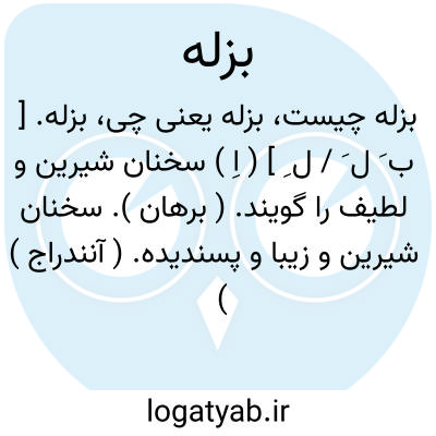 بزله. [ ب َ ل َ / ل ِ ] ( اِ ) سخنان شیرین و لطیف را گویند. ( برهان ). سخنان شیرین و زیبا و پسندیده. ( آنندراج ) ( انجمن آرا ). سخن شیرین و نیکوو زیبا. لطیفه. ( ناظم الاطباء ). رجوع به بذله شود.