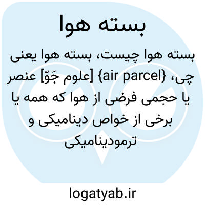 {air parcel} [علوم جَوّ] عنصر یا حجمی فرضی از هوا که همه یا برخی از خواص دینامیکی و ترمودینامیکی هوای جوّ را می توان به آن نسبت داد