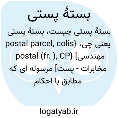 {postal parcel, colis postal (fr. ), CP} [مهندسی مخابرات - پست] مرسوله ای که مطابق با احکام اتحادیۀ جهانی پست و آیین نامۀ امانات پُستی حمل می شود و عموماًً حاوی کالاست