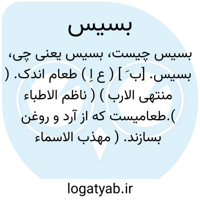 بسیس. [ب َ ] ( ع اِ ) طعام اندک. ( منتهی الارب ) ( ناظم الاطباء ).طعامیست که از آرد و روغن بسازند. ( مهذب الاسماء ).