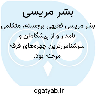 بشر مریسی. [ ب ِ رِ م َ ] ( اِخ ) فقیه، متکلم و از مرجئان بود و طایفه مریسیه از مرجئه به وی منسوبند. نسبت وی بدروازه مریس در بغداد است و در همانجا درگذشت. ( از اعلام زرکلی ).و رجوع به معجم الادباء ج 1 ص 177 س 11 و عیون الاخبار ج 2و عقدالفرید ج 2 و ج 4 و غزالی نامه حاشیه ص 70 شود.
