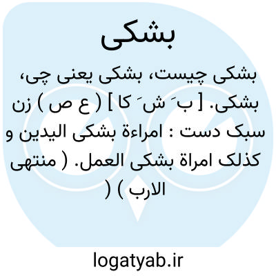 بشکی. [ ب َ ش َ کا ] ( ع ص ) زن سبک دست: امراءة بشکی الیدین و کذلک امراة بشکی العمل. ( منتهی الارب ) ( از ناظم الاطباء ). || ناقه سبک رفتار سبک روح. ( از منتهی الارب ) ( از ناظم الاطباء ) ( از آنندراج ).
