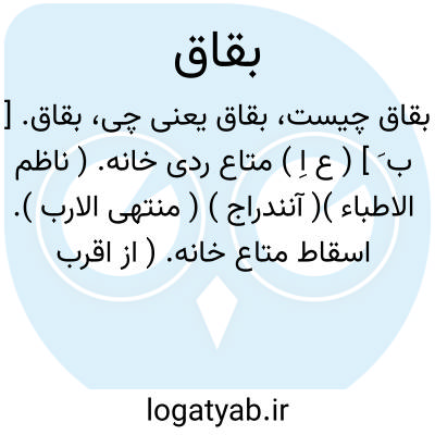 بقاق. [ ب َ ] ( ع اِ ) متاع ردی خانه. ( ناظم الاطباء )( آنندراج ) ( منتهی الارب ). اسقاط متاع خانه. ( از اقرب الموارد ). || خس و خاشاک وادی. ( ناظم الاطباء ) ( منتهی الارب ) ( از آنندراج ). || نام مرغی بسیارآواز. بقاقة، یکی آن. ( ناظم الاطباء ) ( از منتهی الارب ) ( آنندراج ). || مرد بسیارگوی. ( ناظم الاطباء ) ( منتهی الارب ) ( آنندراج ) ( مهذب الاسماء ). بقاقة. ( منتهی الارب ) ( آنندراج ). و رجوع به بقاقة شود.