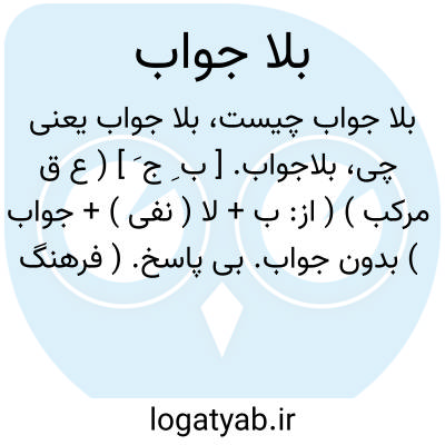 بلاجواب. [ ب ِ ج َ ] ( ع ق مرکب ) ( از: ب + لا ( نفی ) + جواب ) بدون جواب. بی پاسخ. ( فرهنگ فارسی معین ).