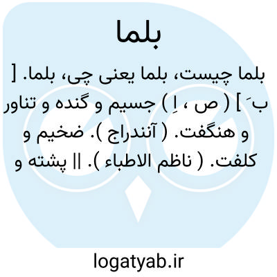 بلما. [ ب َ ] ( ص، اِ ) جسیم و گنده و تناور و هنگفت. ( آنندراج ). ضخیم و کلفت. ( ناظم الاطباء ). || پشته و توده کلان و دراز. ( آنندراج ). || چیزی نرم مانند ریش. ( آنندراج ). || هموار و نرم مانند نان. ( ناظم الاطباء ).
