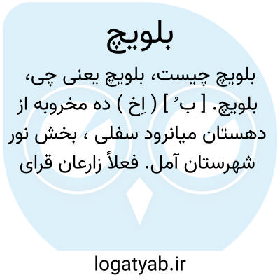 بلویچ. [ ب ُ ] ( اِخ ) ده مخروبه از دهستان میانرود سفلی، بخش نور شهرستان آمل. فعلاً زارعان قرای مجاور در آن زراعت می کنند. ( از فرهنگ جغرافیایی ایران ج 3 ).