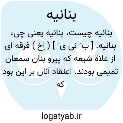 بنانیه. [ ب َ نی ی َ ] ( اِخ ) فرقه ای از غلاة شیعه که پیرو بنان سمعان تمیمی بودند. اعتقاد آنان بر این بود که باری تعالی در علی حلول کرد و پس از وی در پسرش محمدبن حنیفه و پس از او در پسرش ابوهاشم و پس از او در بنان و نیز گویند: خداوند نیز فناپذیر است بجز «وجه خدا» بدلیل آیه و یبقی وجه ربک ذوالجلال و الاکرام در آیه 27 سوره الرحمان. ( از کشاف اصطلاحات الفنون ) ( از تعریفات جرجانی ).