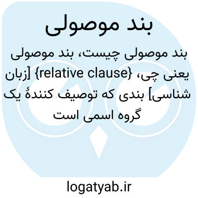 {relative clause} [زبان شناسی] بندی که توصیف کنندۀ یک گروه اسمی است